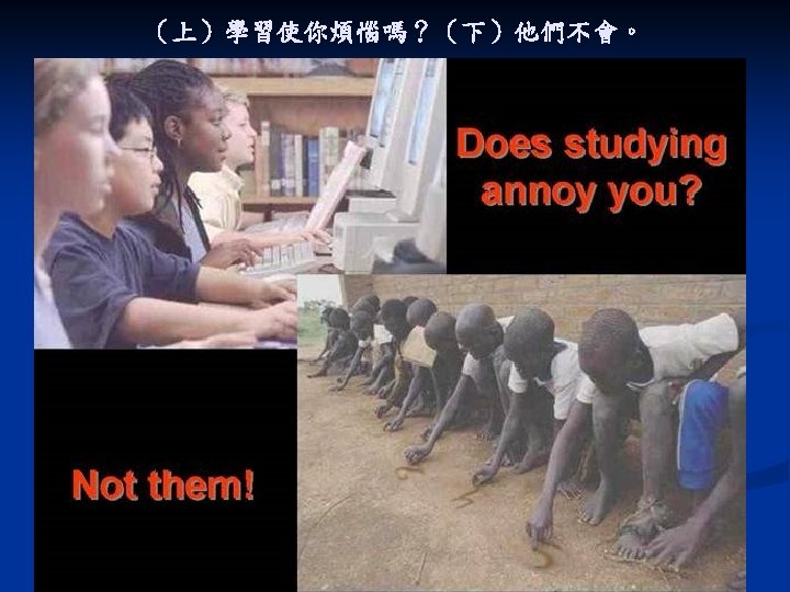 If you think you are unhappy, look at them. 如果你認為你不快樂,看看他們。