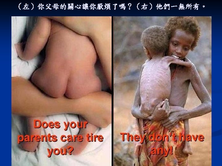 If you think you suffer in life, do you suffer as much as he does? 如果你覺得你生活在痛苦之中,你的痛苦像他的一樣多一樣重嗎?