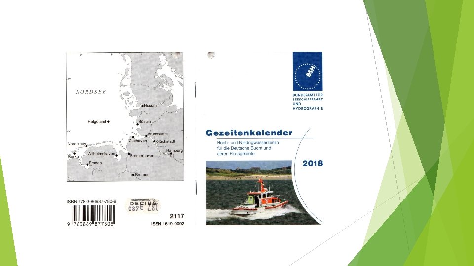 Tiden berechnen In deutschen Gewässern Tidenatlas benutzen (2, 80€) Für Bezugsorte direkt ablesbar Für Anschlussorte leicht ausrechenbar In fremden Gewässern Internet (z. B. https: //de. windfinder. com/tide/ijmuiden)