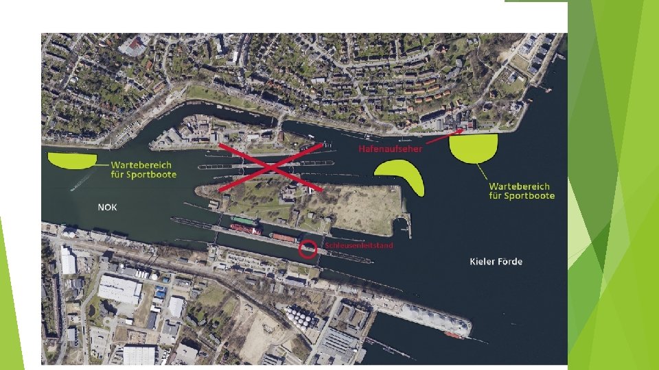 1. Reiseabschnitt: Nord-Ostsee-Kanal Wichtige Regeln: In Kiel sind nur die neuen Schleusen in Betrieb Die Wartebereiche beachten! Einlaufen nur bei weißem Blinklicht allein! Aktuelle Schleusen-Wartezeiten: http: //www. wsa-kiel. wsv. de/Nord-Ostsee-Kanal/Schleusen/Schleuse_Ki. Ho/Schleusenverfuegbarkeit/index. html Kanallänge: 98 km Gute Übernachtungsmöglichkeit: Rendsburg, im Obereidersee beim RVR bei Kanal-km 66 Den Obereidersee bis zum Ende durchlaufen, Hafen an Backbord Vor der Gieselau-Schleuse bei Kanal-km 40, 5 In Brunsbüttel vor den Kanalschleusen