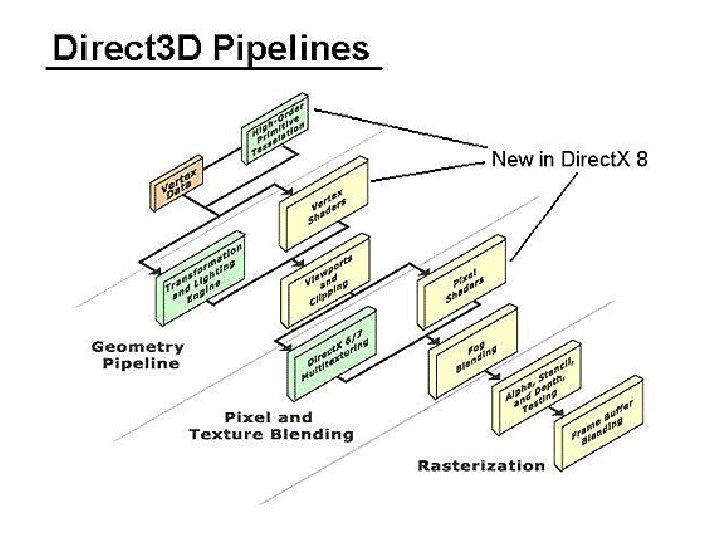 Direct 3 D 10 Features Input Assembler Vertex Buffer Index Buffer Vertex Shader Texture Geometry Shader Texture Stream Output Rasterizer/ Interpolator Pixel Shader Output Merger Texture Depth/Stencil Render Target