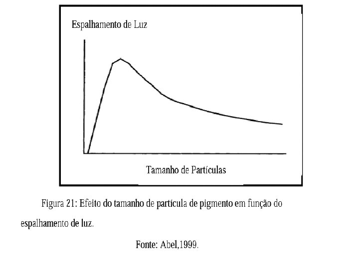 Tamanho das partículas e espalhamento • O espalhamento da luz é maximizado quando o tamanho das partículas encontra-se na faixa entre 200 nm e 250 nm. Assim, a medida que as partículas vão aumentando de comprimento há uma redução no espalhamento de luz e consequentemente no poder de cobertura da tinta.