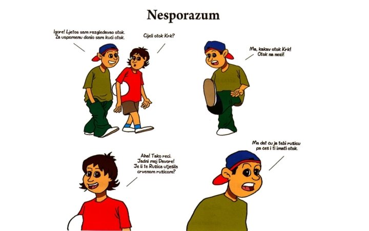 2. Podcrtaj istozvučnice u sljedećim rečenicama. Na nogama Japanke ugledah japanke. Kroz Rijeku protječe rijeka Rječina. U Blatu na Korčuli zbog kiše bilo je dosta blata. Razgledavajući Bol na Braču osjetio sam bol u nogama.