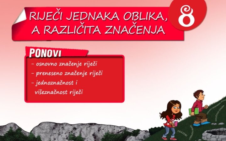 Podsjeti se – višeznačne i jednoznačne riječi NAGLASCI dugosilazni Promotri istaknute riječi u rečenici. dugouzlazni kratkosilazni Otok Krk donio mi je otok na nozi. kratkouzlazni imenica , N m. r. jd. imenica , A m. r. jd. dio kopna okružen vodom oteklina višeznačne riječi Jednoznačne riječi imaju jedno značenje. Imajuriječima li istaknute riječi u rečenici isto značenje? Istaknutim odredi vrstu, padež, rod, broj i naglasak. Višeznačne riječi imaju više značenja.