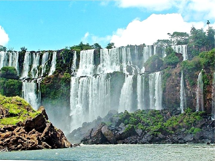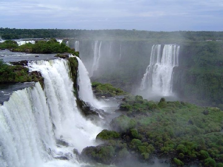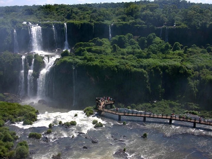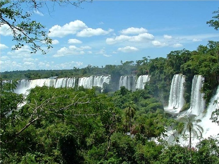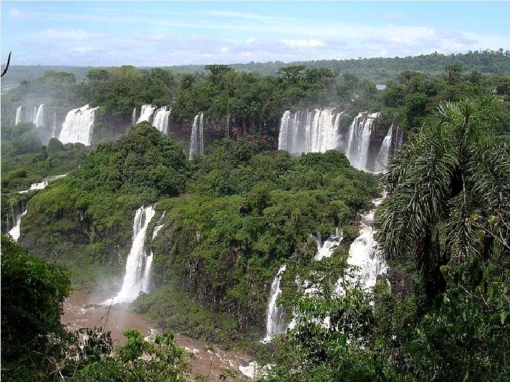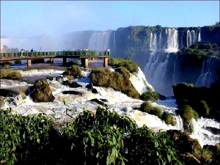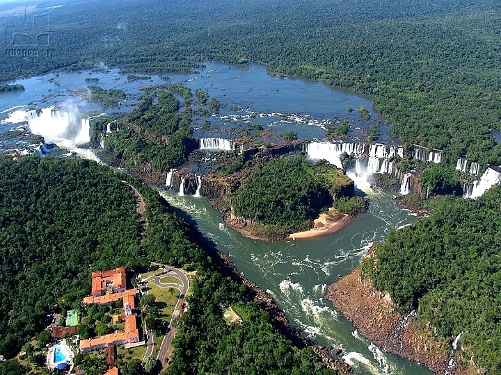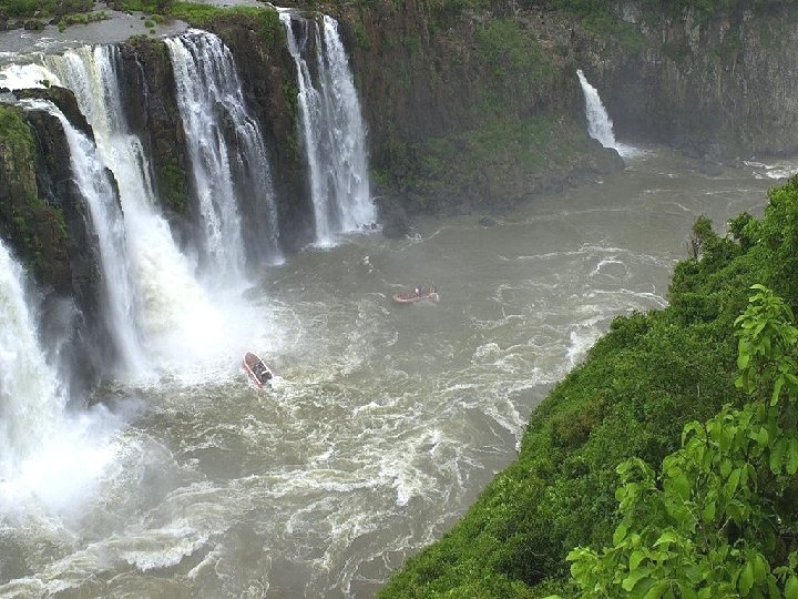 Chutes d'Iguazu- parc national ( Argentine et Brésil). En Portugais : Cataratas do Iguaçu. En Espagnol: Cataratas del Iguazú Parmi les centaines de cascades du monde, Iguazu est l'une des plus belles. Découverte au milieu du XVIe siècle cette œuvre spectaculaire de la nature, climat chauds et végétation tropicale luxuriante, attire un grand nombre de scientifiques et de touristes. Placées à la frontière entre l'État brésilien de Paraná ( 20%) et la province argentine de Misiones (80%) d'où l'on peut habituellement accéder à la "Gorge du Diable", le débit moyen est de 1. 700 m³/sec, et va jusqu'à 7000 m³/sec en période de pluie, exemple en Novembre 2005 : plus que 12. 000 m³/sec. PS: elles sont les plus grandes chutes d'eau dans le monde en termes de largeur (les chutes Victoria sont plus élevés mais plus étroites).