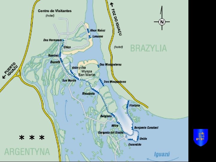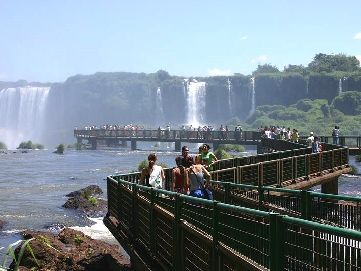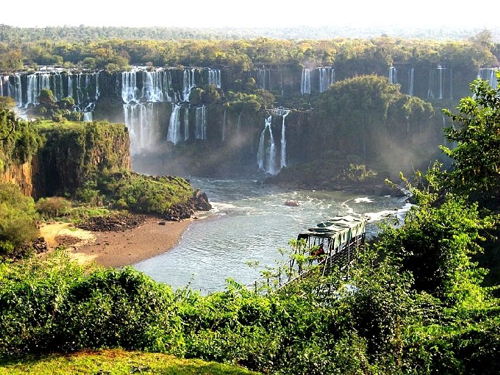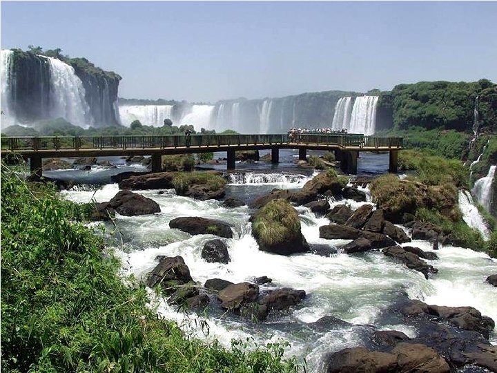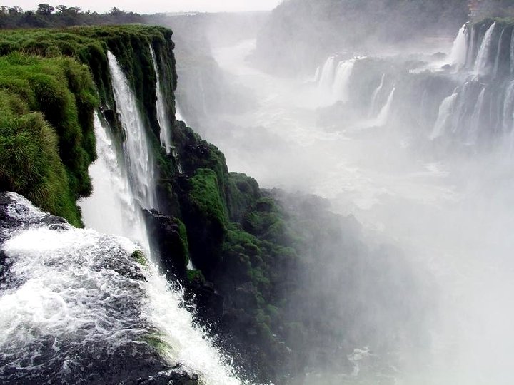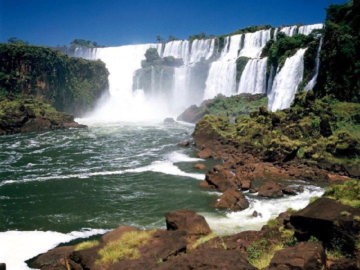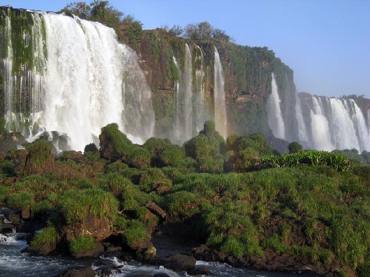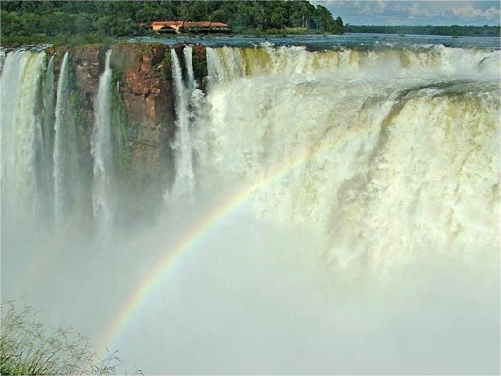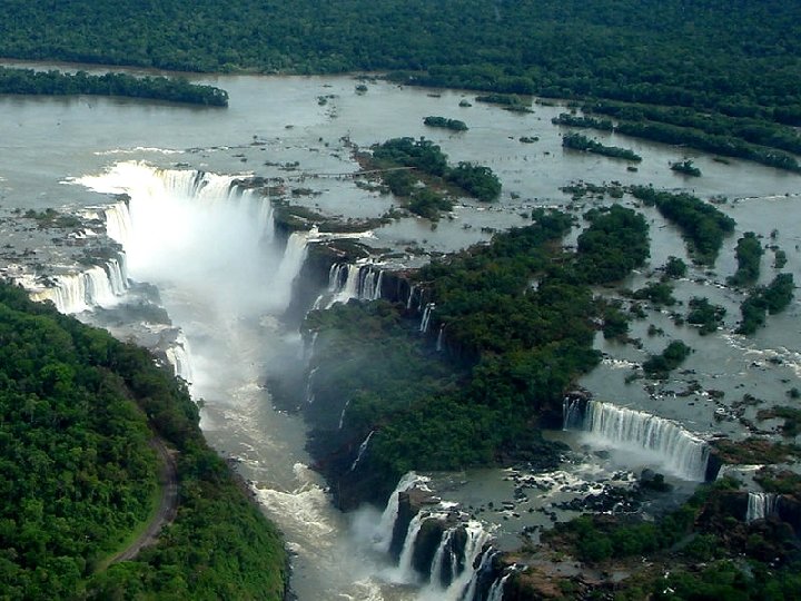 Chutes d'Iguazu- parc national ( Argentine et Brésil). En Portugais : Cataratas do Iguaçu. En Espagnol: Cataratas del Iguazú Parmi les centaines de cascades du monde, Iguazu est l'une des plus belles. Découverte au milieu du XVIe siècle cette œuvre spectaculaire de la nature, climat chauds et végétation tropicale luxuriante, attire un grand nombre de scientifiques et de touristes. Placées à la frontière entre l'État brésilien de Paraná ( 20%) et la province argentine de Misiones (80%) d'où l'on peut habituellement accéder à la "Gorge du Diable", le débit moyen est de 1. 700 m³/sec, et va jusqu'à 7000 m³/sec en période de pluie, exemple en Novembre 2005 : plus que 12. 000 m³/sec. PS: elles sont les plus grandes chutes d'eau dans le monde en termes de largeur (les chutes Victoria sont plus élevés mais plus étroites).