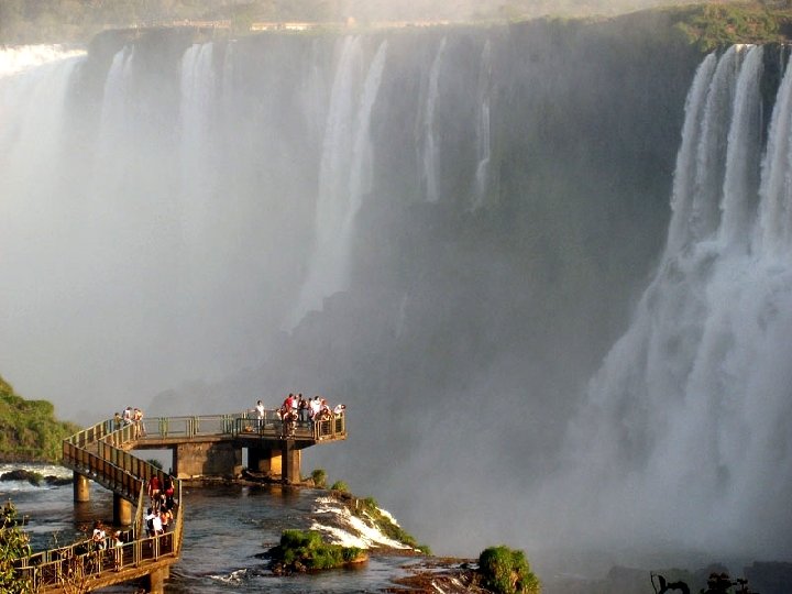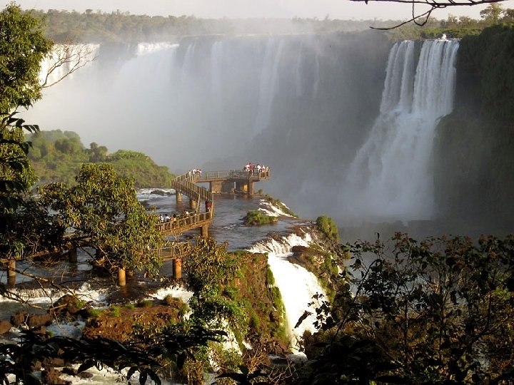 Il y a 20 grandes chutes et 255 petites chutes d'eau sur un tronçon de 2, 7 kilomètres. Certaines ont jusqu'à 82 mètres de dénivelé la moyenne étant de 64 mètres. La Gorge du Diable est un système de cascade déployé dans un long canyon en forme de U (150 mètres de large et 700 mètres de long). Le nom Iguazu vient des mots guarani "y"=eau et "guasu"=grands. C'est le conquistador espagnol Núñez Cabeza de Vaca qui a découvert Álvar en 1542
