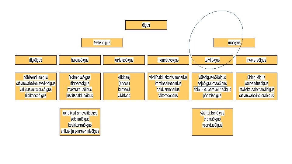 Kontrollküsimused • • • Mis vahe on mõistetel „eraõigus“ ja „tsiviilõigus“? Mida tähendab normi dispositiivsus? Kas osaühing on „isik“? Mis vahe on mõistetel „asi“ ja „ese“? Kas inimese keha saab olla õiguse esemeks? Kas õigus on asi? Kas tsiviilõigusliku suhte subjektiks saab olla juriidiline isik? Kas tsiviilõiguse mõttes on surnu käsitletav isikuna? Kas juriidiline isik saab olla õigusvõimeline? Millal ma saan ostetud maja omanikuks? a) lepingu sõlmimisel b) kande tegemisel kinnistusraamatusse.