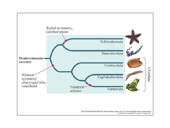II. Animal Diversity C. Bilateria 2. Deuterostomes – blastopore forms anus c. Chordata: 3. Vertebrata - four traits - vertebral column - trends: - increased locomotion - increased cephalization