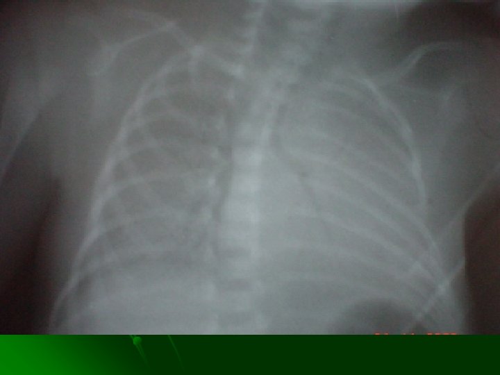 DIAGNOSTICO Gasometria: l Requerimiento de FIO 2 mayor de 0. 4 para mantener PO 2 > 50 mm. Hg. l Hipoxemia. l Hipercapnia: Acidosis respiratoria l IO y Relación a/A útiles para valorar severidad de Enfermedad Pulmonar y eficacia de tratamiento. IO : > 15 SDR severo a/A : < 0. 35 enfermedad pulmonar severa a/A: < 0. 22 SURFACTANTE l Hiponatremia