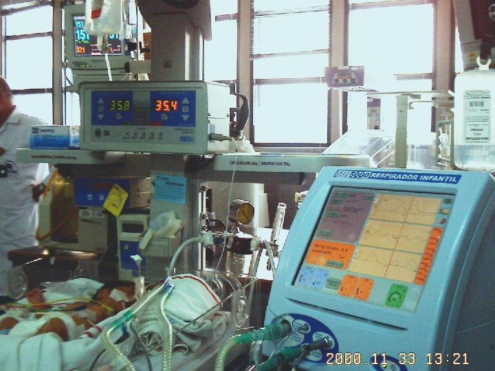 VENTILACION MECANICA Parámetros Iniciales: • PIP: 20 – 25 cm. H 2 O • PEEP: 4 – 6 cm. H 2 O • FR: 20 – 30 x’ • TI: 0. 4 – 0. 5 seg • FIO 2 variable.
