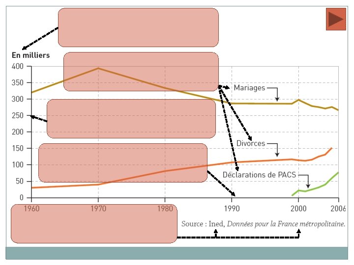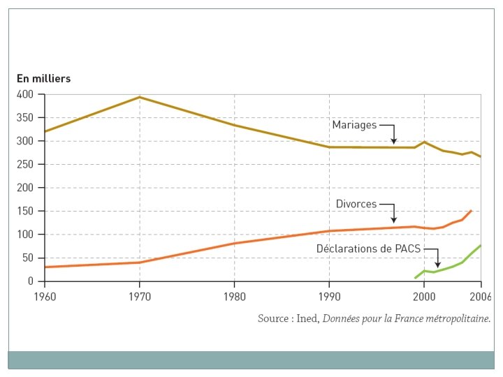 1ère formulation alternative En 2000, selon l’INED, on a… environ 300 000 mariages, 115 000 divorces et 25 000 déclarations de PACS recensé enregistré prononcé dénombré célébré comptabilisé compté