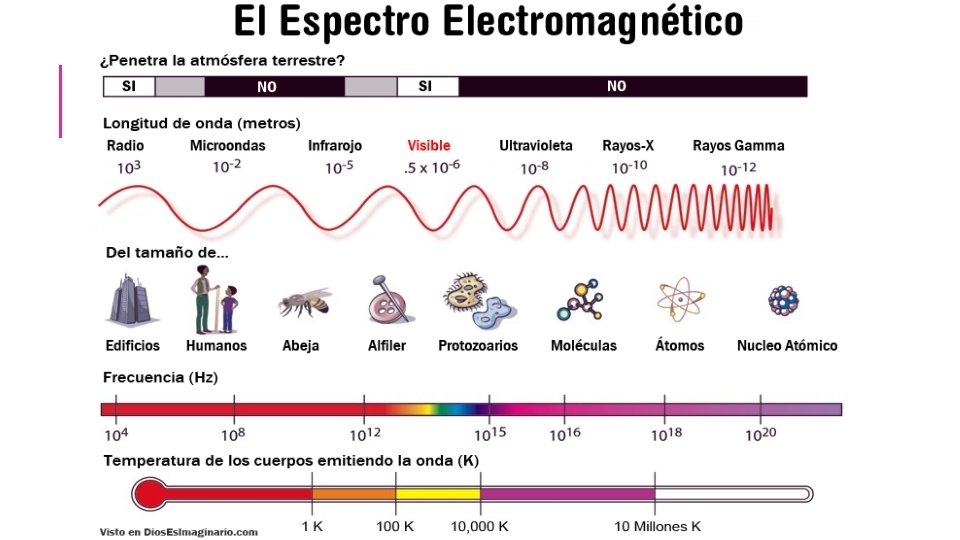 Es una pequeña porción del espectro electromagnético cuyas longitudes de onda oscilan entre los 700(nm) para el color rojo y los 400(nm) para el color violeta. LUZ VISIBLE. Transporta mayor energía que las ondas infrarrojas pero menor energía que las ultravioletas.