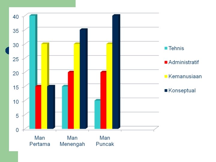4. Ketrampilan teknik (technical skills) adalah kemampuan untuk menggunakan peralatan, prosedur, atau teknik dari suatu bidang tertentu. Setiap ketrampilan harus dimiliki oleh setiap manajer, hanya untuk tingkatan manajemen yang berbeda akan berbeda proporsi masing-masing kebutuhan.