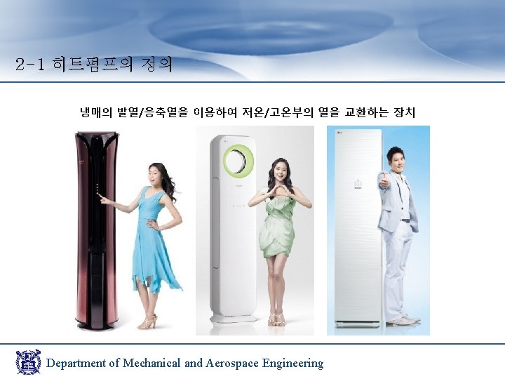 2 -3 히트펌프의 종류 Multi-Split System Water-Heating System Geothermal Heat Pump Thermal Storage Heat Pump Department of Mechanical and Aerospace Engineering