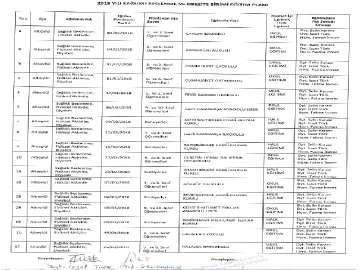 2018 -2019 PLANLANAN OKUL EĞİTİM PLANI Anaokulu İlkokul Ortaokul Lise -Sağlıklı Beslenme/Sağlıklı Tabağım Eğitimi -Fiziksel Aktivite Eğitimi -Sağlıklı Beslenme Eğitimi -Fiziksel Aktivite Eğitimi -Diyabet -Obezite -Tuz Tüketimi (Tüm ilçeler tarafından 1 Ekim 2018 - 7 Haziran 2019 tarihleri arasında tüm okulları kapsayacak şekilde eğitim planlaması yapılmıştır). Hedef Okul Sayısı 73 Hedef Okul Sayısı 204 Hedef Okul Sayısı 165 Hedef Okul Sayısı 92 Gerçekleşen 4 Gerçekleşen 21 Gerçekleşen 5