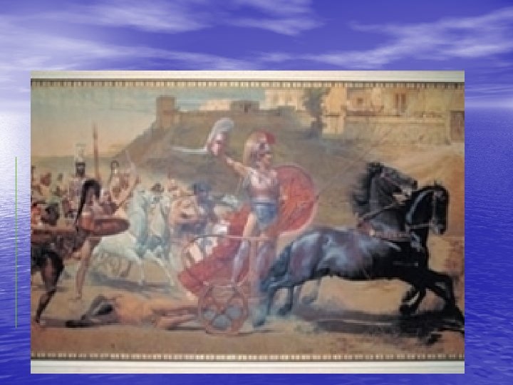 • Végül megöli Hektort, s hogy bosszúvágyát csillapítsa, meggyalázza a holttestet, harci szekere után kötve hurcolja napokon át. *