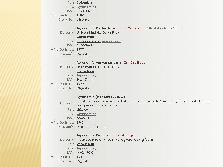 ¿SISTEMAS DE INFORMACIÓN? � No todos los sistemas de información indizan (indexan) las revistas � Para que lo sean, deben ser selectivos � Los directorios, catálogos de bibliotecas, páginas Web NO son sistemas selectivos.