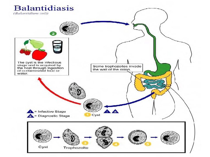 Diagnosis: - Detection of trophozoit and cystic form of parasites in stool.