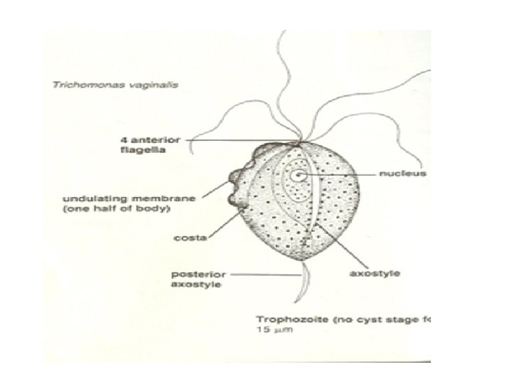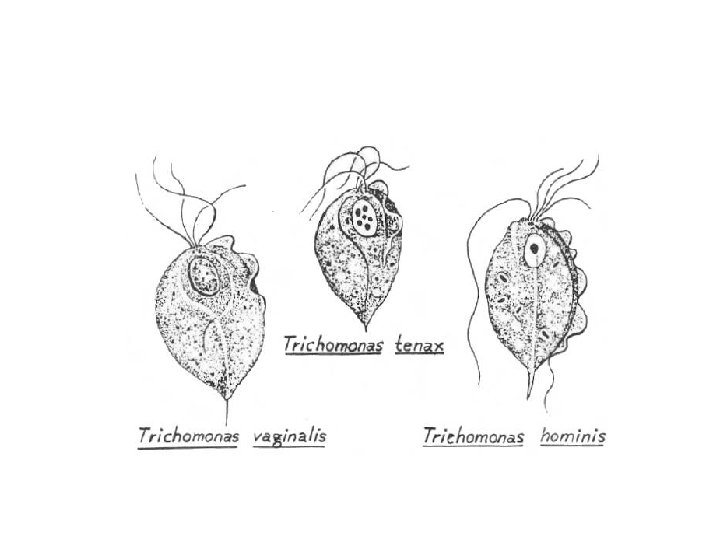 II The flagellates A flagellate: is a cell or organism with one or more whip-like organelles from ectoplasm called flagella. The flagellate protozoa includes: (A) flagellates of the digestive tract and genital organs: inhabiting the mouth, intestine, and genital tract are typically lumen parasites ex. Giardia lamblia in the duodenum and monas vaginalis in the vagina may produce symptoms. (B) flagellates of the blood and tissues ex. Leshmania & Trypanosoma. 1 -Trichomonas vaginalis: is an anaerobic, flagellated protozoan parasite and the causative agent of trichomoniasis. Trichomoniasis is a sexually transmitted disease (STD) caused by a small organism called Trichomonas vaginalis. Infection rates between men and women are similar with women being symptomatic, while infections in men are usually asymptomatic. T. vaginalis does not have a cyst form, organisms can survive for up to 24 hours in urine, semen, or even water samples. Another two species are found in humans (T. hominis in the large intestine and T. tenax in the mouth) are considered harmless commensals.