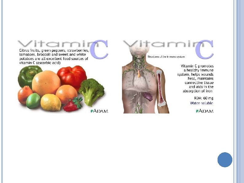 UCHOVÁNÍ VITAMINŮ V ORGANISMU B 1, biotin a kyselina pantothenová = 4 -- 10 dnů C, K, B 2, B 6 a kyselina nikotinová = 2 – 6 týdnů D a kyselina listová = 2 – 4 měsíce E = 6 – 12 měsíců A = 1 – 2 roky B 12 = 2 – 5 let