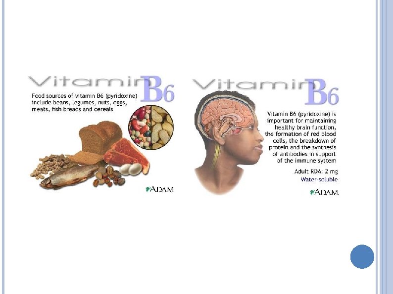 PYRIDOXIN (B 6) ZT schválená: - přispívá k normální syntéze cysteinu - přispívá k normálnímu energetickému metabolismu - přispívá k normální činnosti nervové soustavy - přispívá k normálnímu metabolismu homocysteinu - přispívá k normálnímu metabolismu bílkovin a glykogenu - přispívá k normální psychické činnosti - přispívá k normální tvorbě červených krvinek - přispívá k normální funkci imunitního systému - přispívá ke snížení míry únavy a vyčerpání - přispívá k regulaci hormonální aktivity