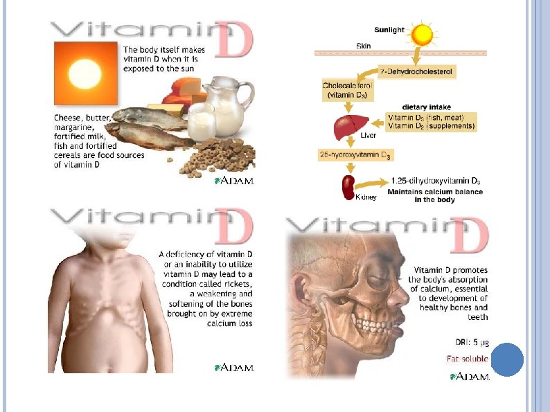 VITAMINY Nezbytné org. sloučeniny, které si náš organizmus neumí sám vyrobit Výjimka: - část vitaminu A se tvoří z přijatého provitaminu (zejména β-karotenu) - vitamin D z provitaminu 7 -dehydrocholesterolu (uloženého v pokožce) - niacin z AK tryptofanu - vitamin K vytvářejí i střevní bakterie