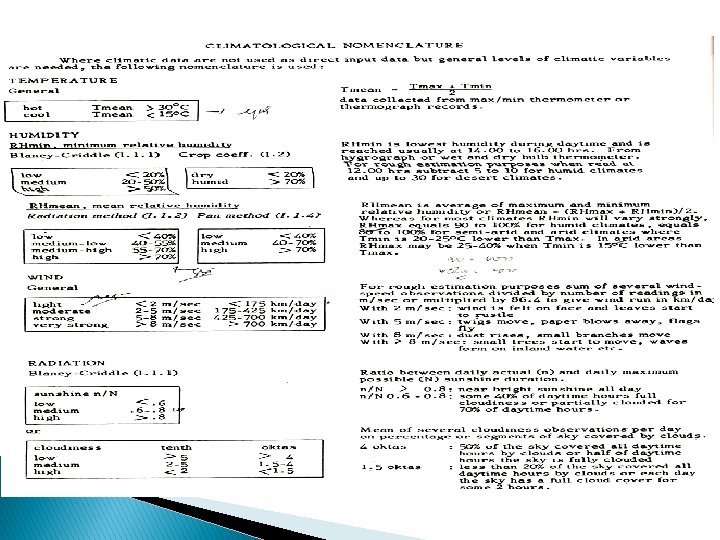 Data tahunan di Cairo J F Suhu rata 14, 0 15, 0 p 0, 24 P(0, 46+8) 3, 5 M A M Jn Jl Ag S O N D 17, 5 21, 0 25, 5 27. 5 28, 5 26, 0 24, 0 20, 0 15, 5 0, 27 0, 29 0, 31 0, 32 0, 31 0, 30 0, 28 0, 26 0, 24 0, 23 3, 8 4, 4 5, 2 6, 7 6, 6 6, 4 5, 7 5, 0 4, 2 3, 5 Informasi tentang KN, Sinar matahri, dan Angin KN min periode n/N U siang Blok Garis Oktober maret medium Ringan/moderat V 1 -2 April-Mei Rendah/med Tinggi/med moderat Iv, V; I & II 2 Juni-juli medium Tinggi/med moderat II &V 2 Agus-Sept medium Tinggi/med Ringan/moderat II & V 1 -2 Menggunakan Gambar 1 Eto mm/h mm/b J F M 2, 8 3. 3 4, 1 87 92 127 A M J J A S O N D 6, 5 8, 0 8, 2 8, 0 7, 2 6, 2 4, 6 3, 5 2, 7 195 248 246 248 223 186 142 105 83