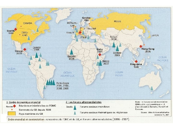 Le mouvement altermondialiste Organisation de forums sociaux Doc 3 p 238 Il s’agit de peser sur les décisions prises par les institutions internationales
