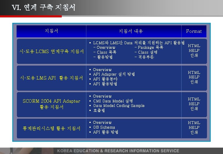 III LMS LCMS API 5 V Template LMS Slides: 9 Download presentation III. LMS LCMS 연계 구축용 API 5 V. 학습 창 Template LMS영역 Frmae API 호출을 위한 scofunction 및 SCORM API를 반영한 내용과 LMS를 연동 하는데 필요한 Sample Code를 반영한 HTML Template Window를 제공 학습영역 Frame 질의 응답 사업 담당 : 조용상(02 -2118 -1447) zzosang@keris. or. kr 홍철기(02 -2118 -1365) henricus@keris. or. kr 9