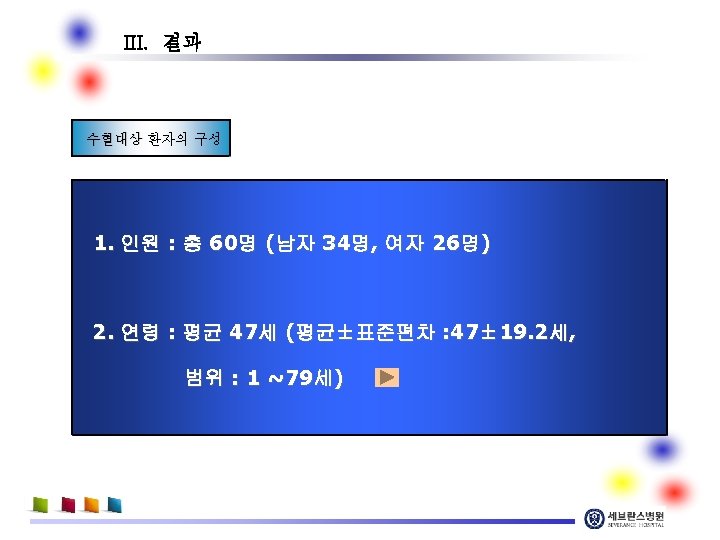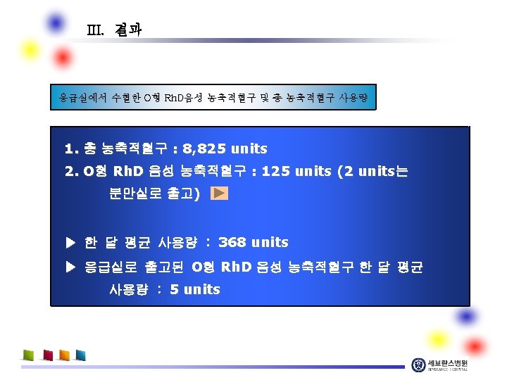 III. 결과 O형 Rh. D음성 농축적혈구의 TAT (turnaround time) TAT : 평균 1. 8분