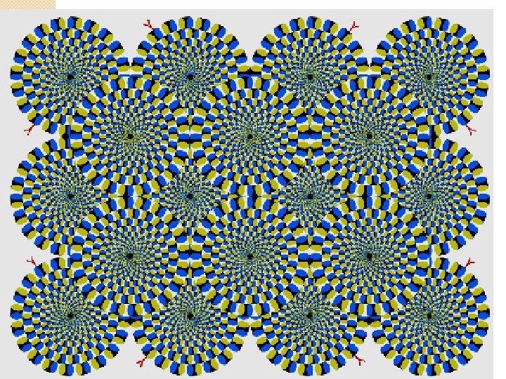 Perceived Motion �Stroboscopic effect (flip book effect) �Phi phenomenon �Autokinetic Effect (if people stare at a white spotlight in a dark room, it appears to move. )