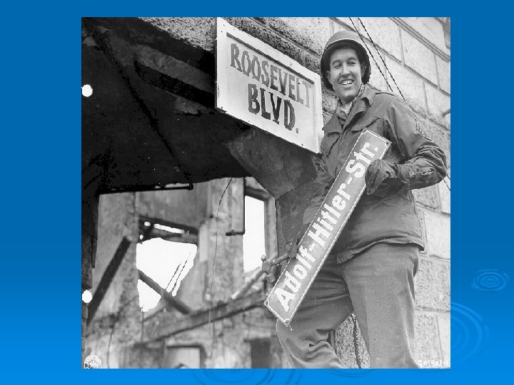 DOWN AND OUT IN BERLIN April 21, 1945 Soviets reach Berlin. April 28, 1945 Mussolini is captured and hanged by Italian partisans. April 30, 1945 – Adolf Hitler commits suicide. May 8, 1945 – V-E Day (Victory in Europe Day).