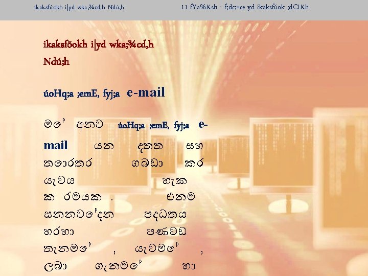ikaksfúokh i|yd wka; ¾cd, h Ndú; h ikaksfõokh i|yd wka; ¾cd, h Ndú; h úo. Hq; a ; em. E, fyj; a e-mail myiqlï , nd fok fjí wvú www. google. com www. yahoo. com www. msn. com 11 f. Ya%Ksh - f; dr; =re yd ikaksfúok ; d. CIKh