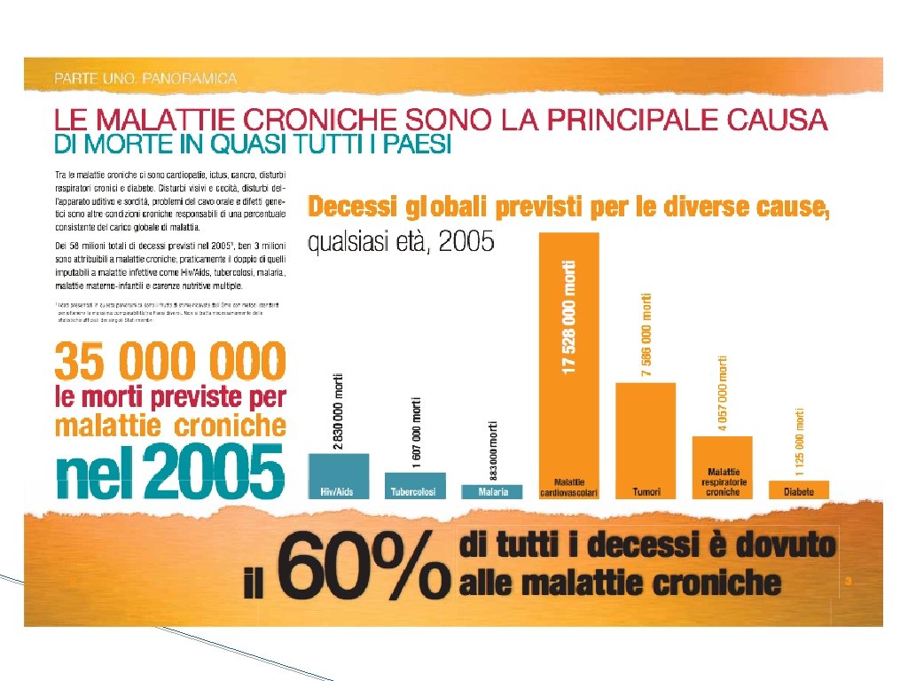 Le cronicità: il motore del cambiamento Le malattie croniche • Hanno sostituito quelle acute come problema dominante per la salute • Sono diventate la principale causa di disabilità e di utilizzo dei servizi • Assorbono il 78% dell’intera spesa sanitaria • Hanno modificato il ruolo del medico, che da unico protagonista della cura, diventa membro di un team multiprofessionale in grado di elaborare il piano di cura che tenga conto della molteplicità dei bisogni, così come di garantire la continuità dell’assistenza Holman H. del JAMApaziente 2004; 292(9): 1057 -59 • Hanno cambiato il ruolo che, da