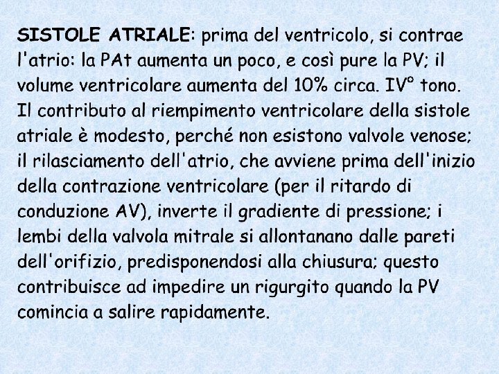 ALCUNE OSSERVAZIONI: il sangue si muove sempre seguendo gradienti di pressione, non la forza di gravità. In un individuo in stazione eretta si può pensare ad una "caduta" dall'atrio al ventricolo, ma ciò non avviene perché il sistema circolatorio è chiuso. Inoltre il ventricolo si riempie indifferentemente dalla posizione del corpo.