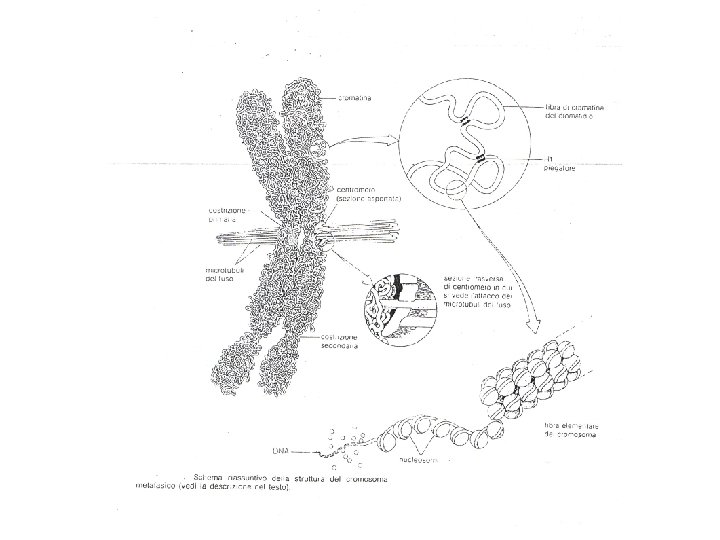 Profase mitotica • Durante l’interfase l’insieme dei cromosomi costituiscono la cromatina nucleare. • Durante la profase i cromosomi si condensano assumendo la loro forma tipica e diventano visibili al M. O. • Ogni cromosoma è diviso in due subunità dette Cromatidi • La membrana nucleare scompare