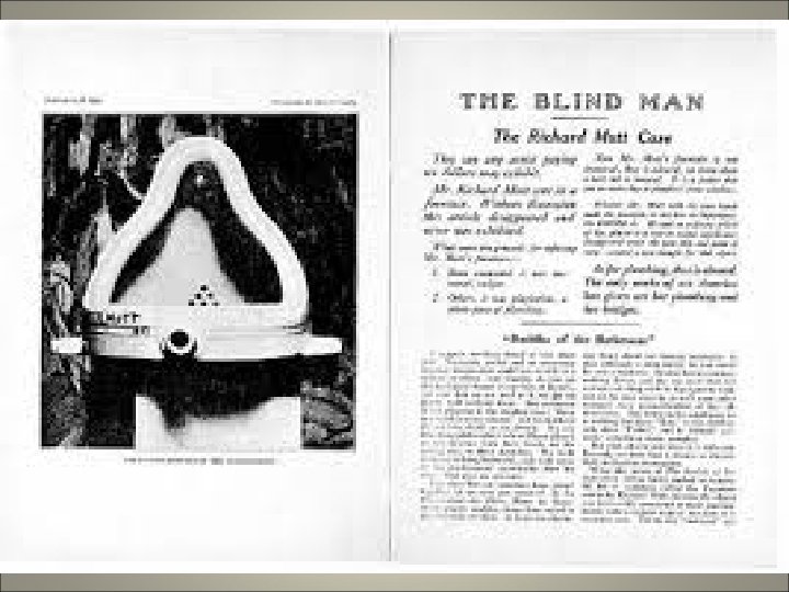 IL DADAISMO Il Dadaismo è un movimento artistico che nasce in Svizzera, a Zurigo, nel 1916. La situazione storica in cui il movimento ha origine è quello della Prima Guerra Mondiale, con un gruppo di intellettuali europei che si rifugiano in Svizzera per sfuggire alla guerra. Questo gruppo è formato da Hans Arp, Tristan Tzara, Marcel Janco, Richard Huelsenbeck, Hans Richter, e il loro esordio ufficiale viene fissato al 5 febbraio 1916, giorno in cui fu inaugurato il Cabaret Voltaire fondato dal regista teatrale Hugo Ball. Alcuni di loro sono tedeschi, come il pittore e scultore Hans Arp, altri rumeni, come il poeta e scrittore Tristan Tzara o l’architetto Marcel Janco. Ma veniamo ai contenuti principali del dadaismo. Innanzitutto il titolo. La parola Dada, che identificò il movimento, non significava assolutamente nulla, e già in ciò vi è una prima caratteristica del movimento: quella di rifiutare ogni atteggiamento razionalistico. Il rifiuto della razionalità è ovviamente provocatorio e viene usato come una clava per abbattere le convenzioni borghesi intorno all’arte. Pur di rinnegare la razionalità i dadaisti non rifiutano alcun atteggiamento dissacratorio, e tutti i mezzi sono idonei per giungere al loro fine ultimo: distruggere l’arte. Distruzione assolutamente necessaria per poter ripartire con una nuova arte non più sul piedistallo dei valori borghesi ma coincidente con la vita stessa e non separata da essa. Il movimento, dopo il suo esordio a Zurigo, si diffonde ben presto in Europa, soprattutto in Germania e quindi a Parigi. Benché il dadaismo è un movimento ben circoscritto e definito in area europea, vi è la tendenza di far ricadere nel medesimo ambito anche alcune esperienze artistiche che, negli stessi anni, ebbero luogo a New York negli Stati Uniti. L’esperienza dadaista americana nacque dall’incontro di alcune notevoli personalità artistiche: il pittore francese Marcel Duchamp, il pittore e fotografo americano Man Ray, il pittore franco-spagnolo Francis Picabia e il gallerista americano Alfred Stieglitz. La vita del movimento è abbastanza breve. Del resto non poteva essere diversamente. La funzione principale del dadaismo era quello di distruggere una concezione oramai vecchia e desueta dell’arte. E questa è una funzione che svolge in maniera egregia, ma per poter divenire propositiva necessitava di una trasformazione, e ciò avvenne tra il 1922 e il 1924, quando il dadaismo scomparve e nacque il surrealismo.