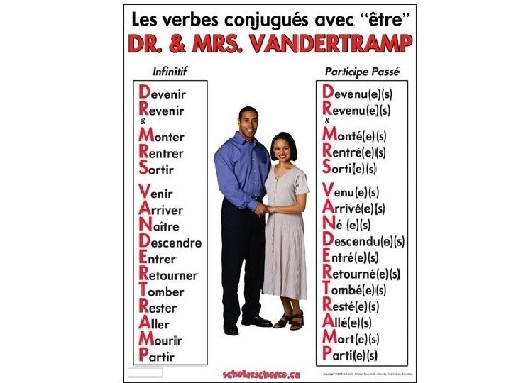 Who are Dr and Mrs Vandertramp? They are verbs that use être as a helping verb in passé composé