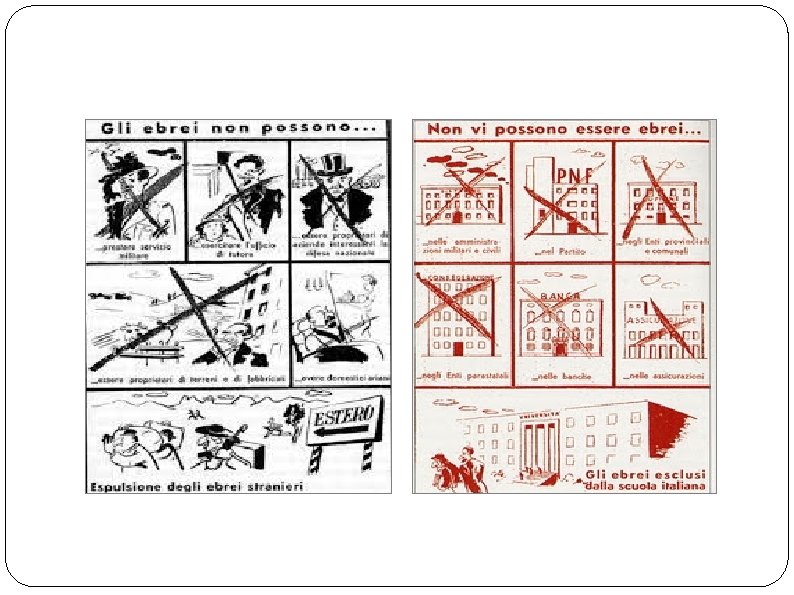 GLI EBREI FURONO ESCLUSI DALLE SCUOLE, DALLE UNIVERSITA', DA MOLTE PROFESSIONI, FU LORO PROIBITO DI FREQUENTARE LUOGHI ED ASSOCIAZIONI FREQUENTATE DAI NON EBREI E DI SPOSARE CITTADINI ARIANI. MOLTI FURONO COSTRETTI A EMIGRARE O A NASCONDERE LA LORO IDENTITA'. TALE SEGREGAZIONE FU PURTROPPO PRATICATA ANCHE NELLE COLONIE DELL'AFRICA ORIENTALE