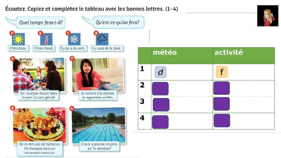 Il fera beau demain? Walt: To describe the weather using the future tense.