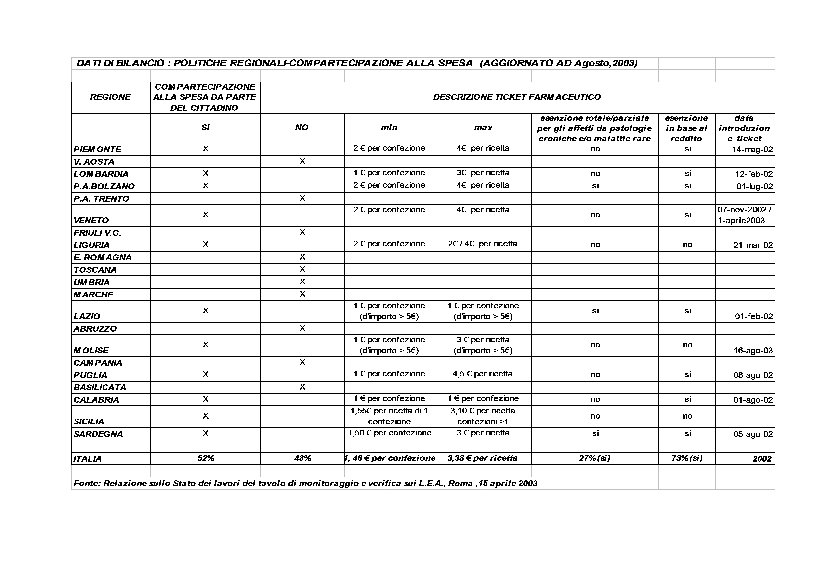 Ticket Compartecipazioni: Applicazione a macchia di leopardo: Le regioni in bianco non applicano alcuna forma di ticket