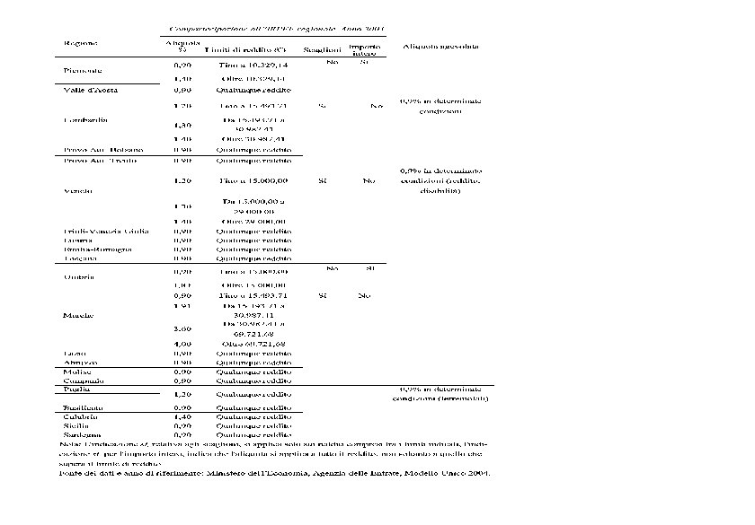 Irap Add. le Irpef TOTALE Iva e accise Riequilibrio Stima Irap e add. le Irpef (1) (2) A=1+2 2. 735, 459 228, 350 2. 963, 809 2. 725, 460 -23, 246 VALLE D'AOSTA 76, 030 6, 635 82, 664 - - LOMBARDIA 542, 460 8. 752, 602 2. 821, 044 108, 399 26, 016 360, 450 - - 300, 338 24, 967 325, 306 - - 3. 056, 254 230, 150 3. 286, 405 2. 456, 792 26, 371 FRIULI-VENEZIA GIULIA 710, 797 63, 771 774, 568 0, 000 - LIGURIA 751, 502 83, 050 834, 552 1. 442, 931 30, 096 2. 928, 465 232, 334 3. 160, 798 2. 244, 474 -23, 894 TOSCANA 2. 073, 069 176, 432 2. 249, 500 2. 545, 771 -28, 272 UMBRIA 345, 821 36, 356 382, 177 754, 188 -6, 949 MARCHE 755, 154 66, 181 821, 336 1. 136, 189 -21, 529 LAZIO 3. 465, 925 260, 232 3. 726, 157 2. 998, 613 109, 117 ABRUZZO 433, 174 45, 837 479, 011 1. 202, 250 -16, 191 MOLISE 36, 623 9, 981 46, 603 383, 643 0, 195 CAMPANIA 1. 267, 112 157, 868 1. 424, 980 5. 443, 501 364, 152 PUGLIA 835, 955 114, 798 950, 753 4. 029, 986 146, 505 BASILICATA 51, 136 17, 046 68, 182 701, 273 7, 323 CALABRIA 133, 933 50, 448 184, 381 2. 367, 772 67, 327 SICILIA 1. 374, 178 133, 687 1. 507, 865 - 113, 935 SARDEGNA 546, 791 52, 735 599, 525 - 32, 160 PIEMONTE Provincia autonoma BOLZANO Provincia autonoma TRENTO VENETO EMILIA ROMAGNA 8. 210, 142 334, 434 (3) (4) B. Gesù riequiilibrio (da ripartire) ITALIA per LEA 30. 422, 290 147, 417 2. 559, 333 32. 981, 623 33. 253, 886 1. 032, 917