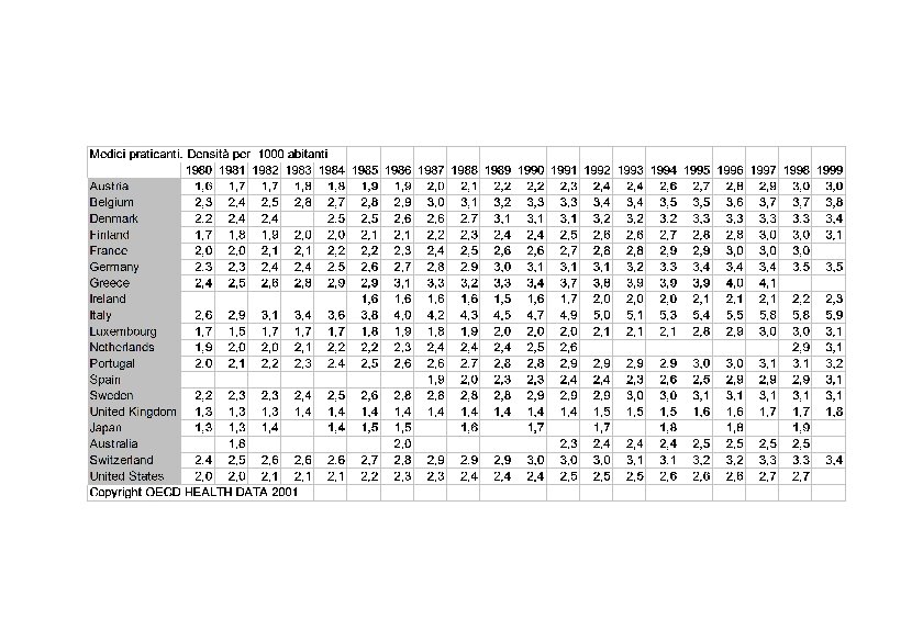 I pericoli della concorrenza eccessiva tra medici • La teoria della domanda indotta dall’offerta postula che al crescere della densità dei medici per 1000 abitanti aumenta anche la spesa sanitaria: ciò è dovuto, in presenza di pagamento a tariffa, al desiderio dei medici di compensare, con maggiori cure per ogni paziente, il proprio ridotto giro di clientela. • I limiti a tale fenomeno possono derivare o da disutilità per i medici generata da questo comportamento “scorretto”, o da maggior controllo da parte dei pazienti • In Italia il rischio di domanda indotta è presente per l’elevata densità dei medici ma è anche, probabilmente limitato, nel settore pubblico, dal metodo di pagamento dei medici (quota capitaria o stipendio). Resta forte nel settore privato, e può trovare un limite solo nei fattori prima elencati.