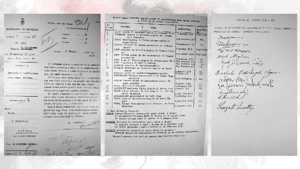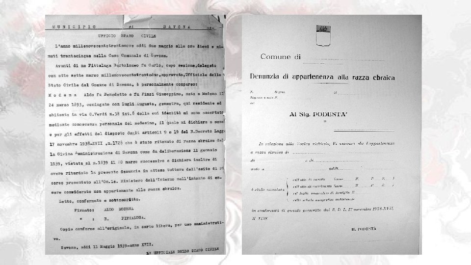 5 SETTEMBRE 1938, Regio Decreto n. 1390 ART. 1 «All'ufficio di insegnante nelle scuole statali o parastatali di qualsiasi ordine e grado e nelle scuole non governative, ai cui studi sia riconosciuto effetto legale, non potranno essere ammesse persone di razza ebraica, anche se siano state comprese in graduatorie di concorso anteriormente al presente decreto; né potranno essere ammesse all'assistentato universitario, né al conseguimento dell'abilitazione alla libera docenza. » ART. 2 «Alle scuole di qualsiasi ordine e grado, ai cui studi sia riconosciuto effetto legale, non potranno essere iscritti alunni di razza ebraica. » ART. 6