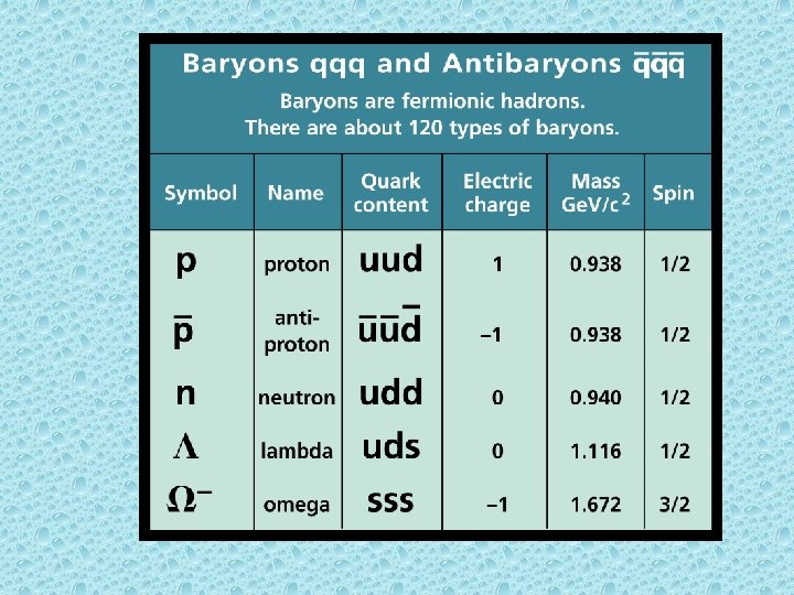 • These three gauge bosons along with the photons are grouped together which collectively mediate the electroweak interactions. • The eight gluons mediate the strong nuclear interactions between color charged particles (quarks). • Gluons are massless. But, each of the eight carry combinations of color and an anticolor charge enabling them to interact among themselves. • The gluons and their interactions are described by theory of quantum chromodynamics.