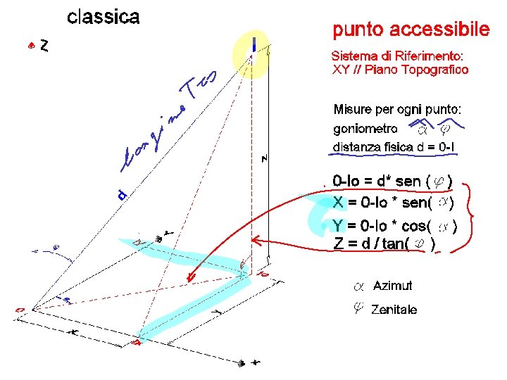 MISURE COORDINATE NORD ed EST DEL PUNTO COLLIMATO QUOTA DELLA STAZIONE DISTANZA Differenza di quota del centro strumentale dal punto di stazione Differenza di quota del riflettore dal punto a terra DIFFERENZA DI QUOTA TRA STAZIONE E PUNTO MISURATO DISTANZA ORIZZONTALE COORDINATE NORD ed EST DELLA STAZIONE QUOTA DELLA STAZIONE