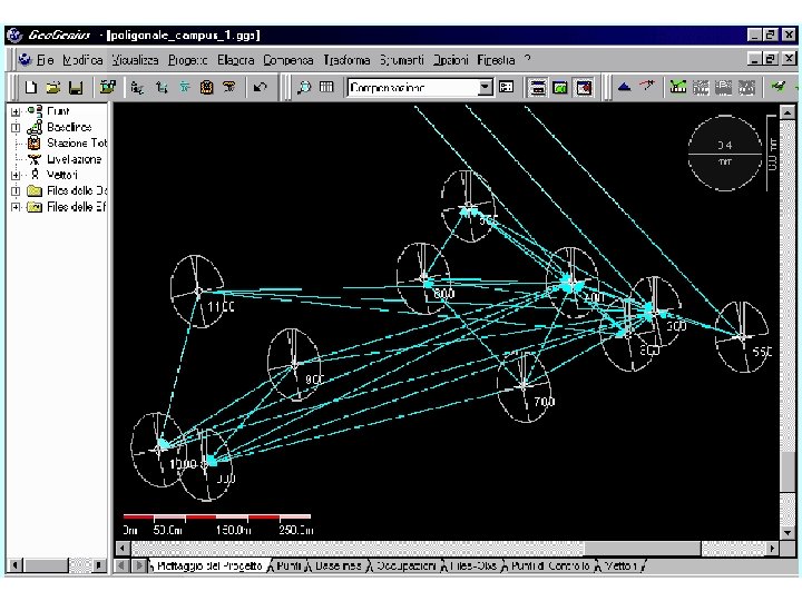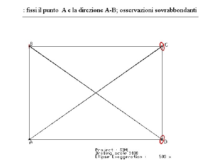 3. 4. 5. Ogni misura (EQUAZIONI) ha una sua precisione intrinseca espressa mediante il suo s. q. m. , precisione che costituisce il PESO statistico dell'equazione nel sistema complessivo. Ogni equazione del sistema esprime le relazioni tra la MISURA ESEGUITA di un elemento ed il valore di questa misura CALCOLATO dai valori provvisori di coordinate del punto: i due termini differiscono tra loro di una quantità, via decrescente detta: TERMINE NOTO DELLE EQUAZIONI GENERATE.