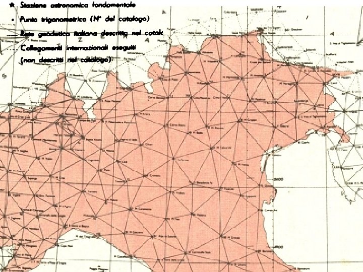 Sistema di riferimento locale italiano: Roma 40 Per la cartografia nazionale di impianto Assume l’ellissoide: internazionale (hayford) E un orientamento locale, nel punto fondamentale di Roma M. Mario Rete geodetica nazionale d’impianto del 1908