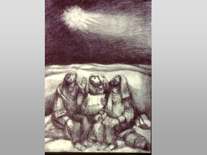Anche l’uomo di destra ha un’espressione molto stupita, anche lui è intento a guardare la stella. Ad una prima osservazione i sapienti hanno in mano dei fogli, ma l’uomo di centro sembra avere in mano una cartina geografica o meglio ancora una carta delle stelle servita per un orientamento durante il viaggio, anche perché era risaputo che essi conoscevano l’astronomia. Questi sapienti vengono raffigurati in un luogo deserto, e così la stella rappresenta per loro l’unico punto di riferimento. Ma è interessante invece sottolineare che l’uomo di destra ha il Rotolo della Legge. Oltre ad un orientamento geografico i magi hanno seguito un orientamento spirituale, biblico. Questo a significare che il loro non era un semplice viaggio, ma probabilmente essi stessi avevano quella consapevolezza che il loro era un vero Pellegrinaggio – unico nel suo genere – verso la grotta di Betlemme.
